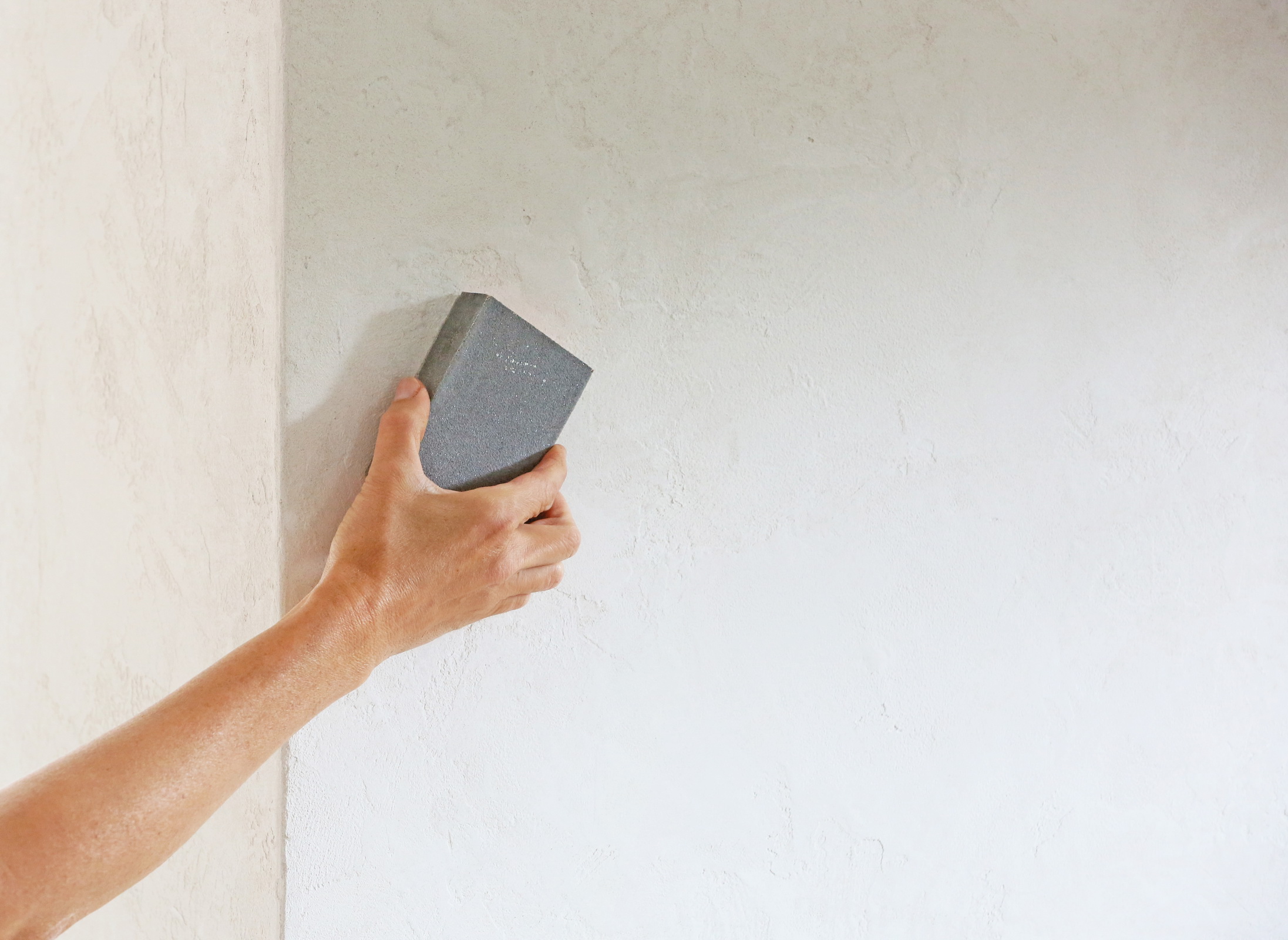 Po 24 hodinách můžete jemnou brusnou houbičkou přebrousit nerovnosti, hlavně v rozích. Pokud byla druhá vrstva silnější, vyčkejte klidně déle.