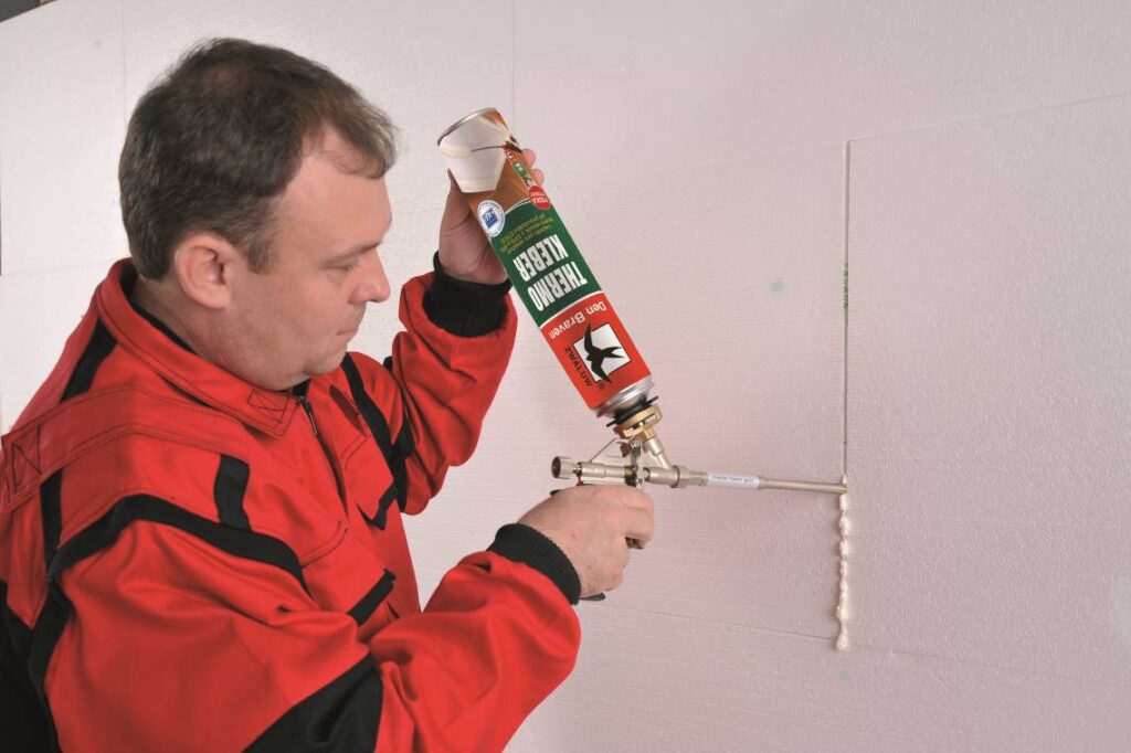 - Pomocí produktu THERMO KLEBER můžete kromě lepení i vyplňovat mezery mezi izolačními deskami. Skvěle zaplní každou škvíru a materiál nejenže spojí, ale také sám funguje jako izolace.