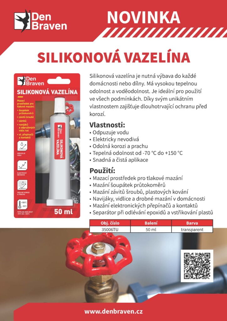 Silikonová vazelína je nutná výbava do každé domácnosti nebo dílny. Má vysokou tepelnou odolnost a voděodolnost. Je ideální pro použití ve všech podmínkách. Díky svým unikátním vlastnostem zajišťuje dlouhotrvající ochranu před korozí.