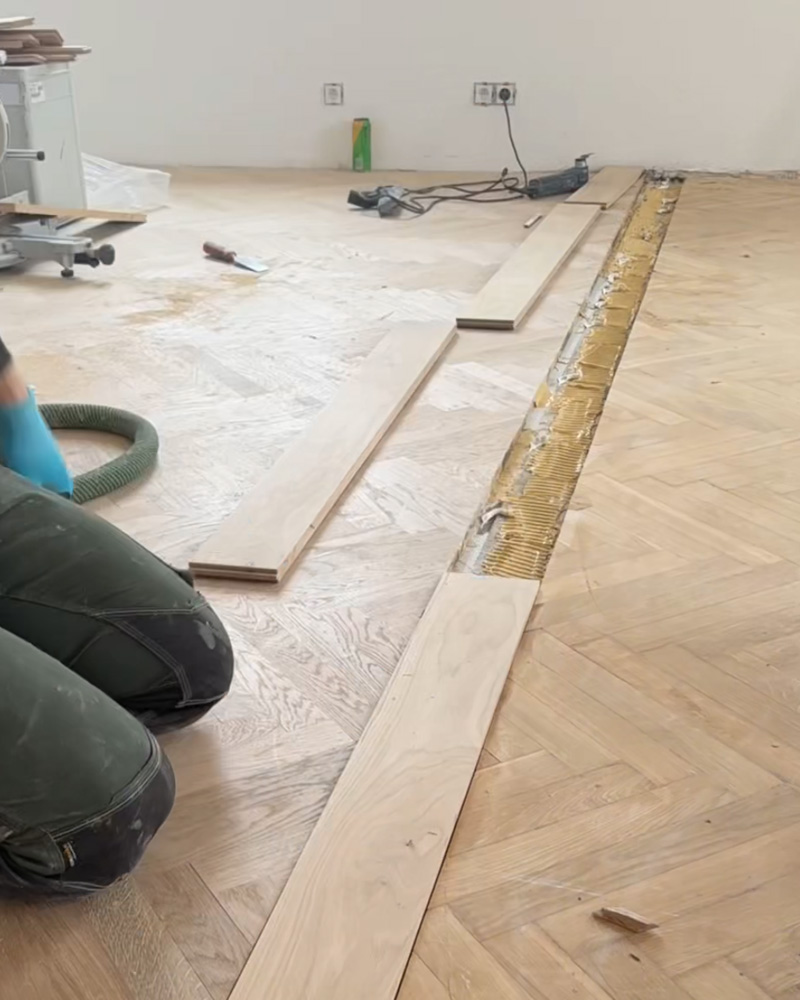 U parket rozhoduje o výsledku hlavně příprava. U dřevěných podlah je důležitá i správná vlhkost a přesné načasování pokládky, aby se minimalizovalo riziko pozdějších pohybů materiálu.