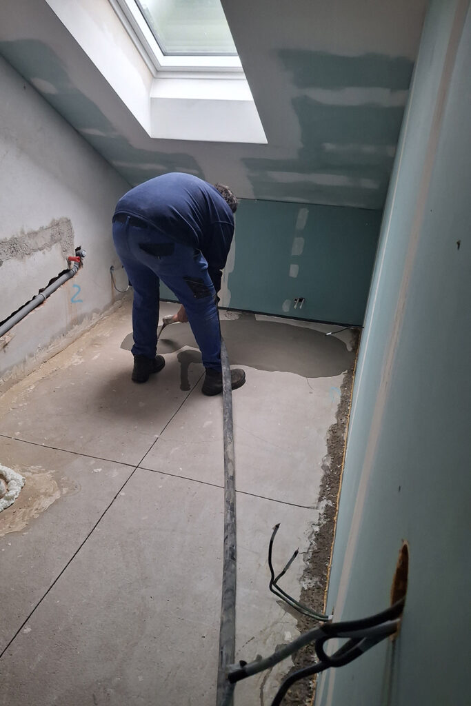 A co rozpínání materiálu na tak velké ploše? Na první pohled nenápadné dilatační pásky hrají při vyrovnávání podlah zásadní roli. Umisťují se po obvodu místnosti mezi podlahu a stěnu, aby mohla podlaha volně pracovat při změnách teploty nebo objemových pohybech materiálu. Bez těchto pásek by se na podlaze mohly tvořit praskliny, které by znehodnotily celou práci. Správně umístěné pásky navíc pomáhají s akustickou izolací, protože zabraňují přenosu kročejového hluku do konstrukce stěn.