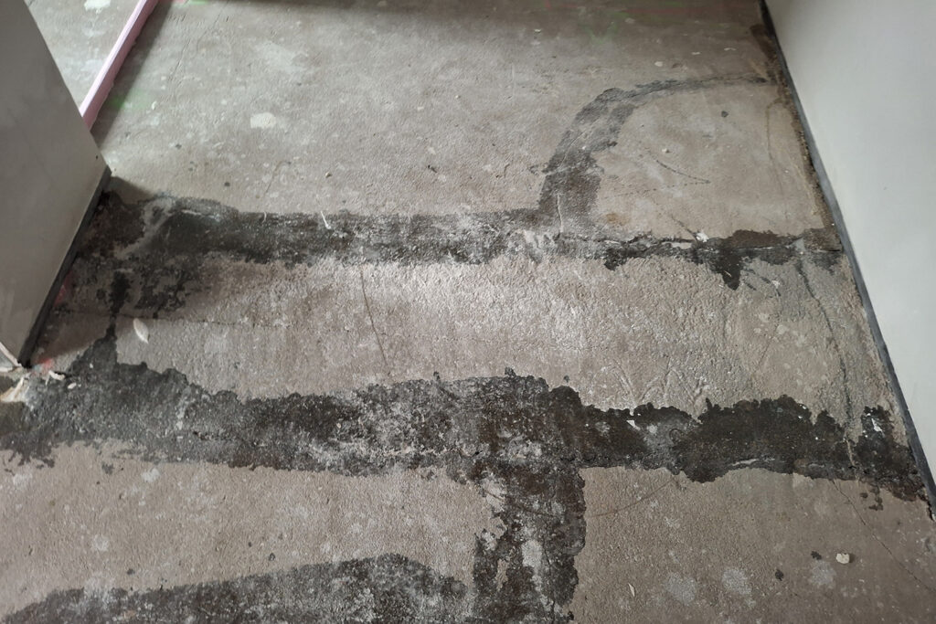 Starší betonové podlahy bývají často narušené drobnými trhlinami, které mohou později přerůst v vážnější problémy. Proto se nejprve řešilo jejich sešití pomocí systému EPOXIN F1000 DRY. Tento dvousložkový epoxid se po smíchání s křemičitým pískem frakce 0,8 až 1,2 milimetru stává velmi pevnou a kompaktní hmotou. Výsledkem je pevný, soudržný spoj, který obnovuje nosnost podlahy a zabraňuje dalšímu šíření trhlin.