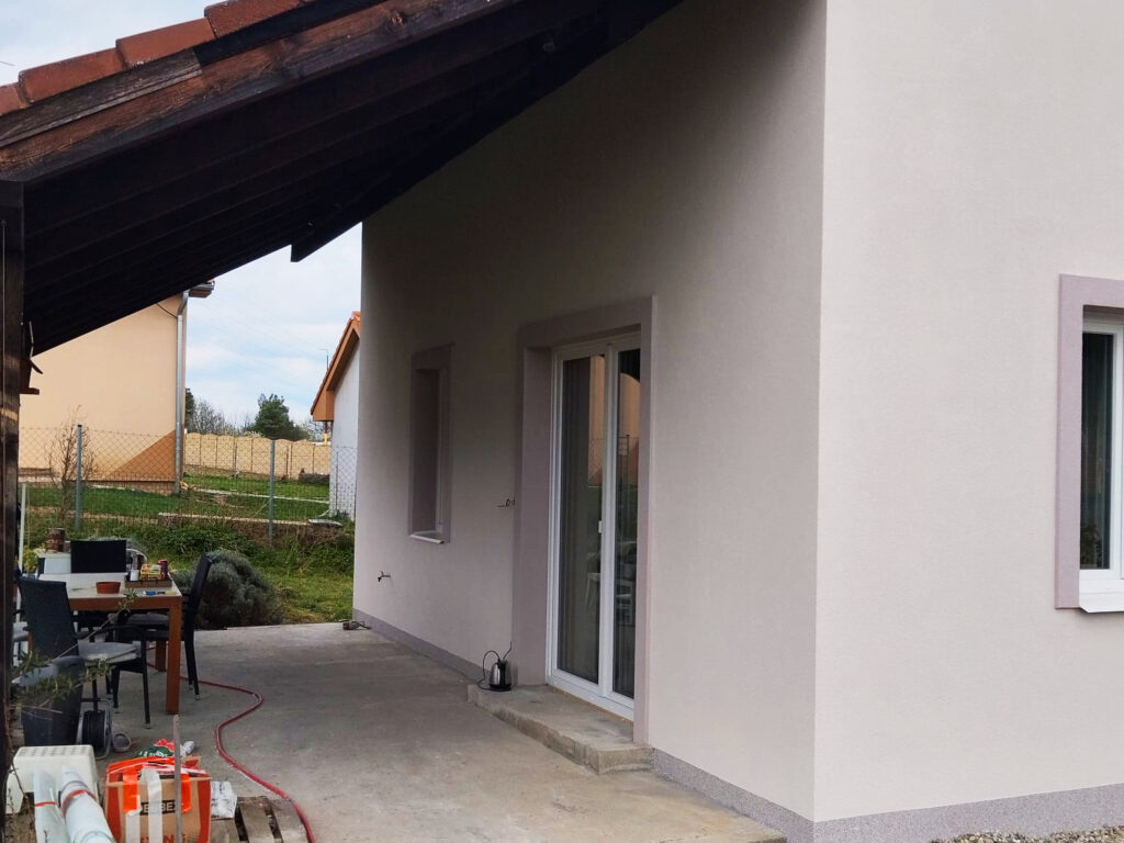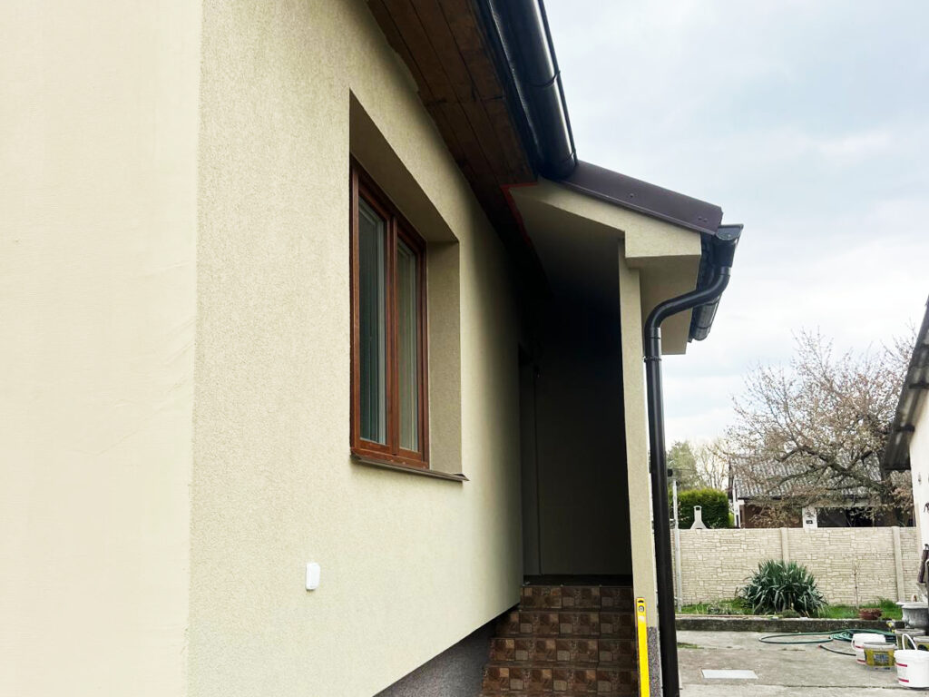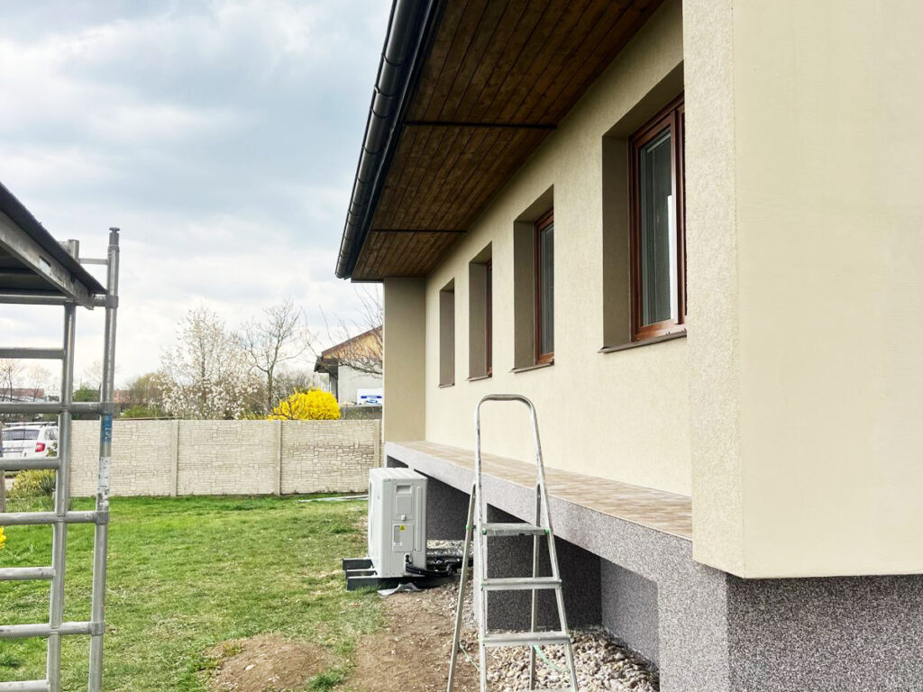 Součástí systému ETICS je také finální estetická vrstva. Jejich úkolem není jen dům zkrášlit, ale především chránit ho před vnějšími vlivy. Pro naše realizace jsme použili fasádní barvy SILDEKOR, které jste mohli vidět například v předchozí realizaci ve Vyškově, a mozaikové omítky ze stejné řady.