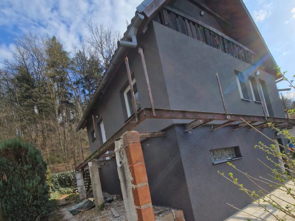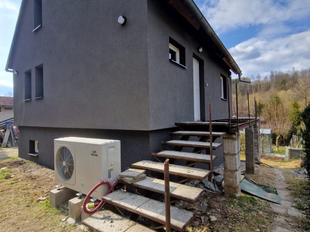 Původní chalupa v zahrádkářské kolonii může sloužit jako plnohodnotné bydlení. I v tomto případě šlo o rozsáhlou obnovu! Nový plášť domu, okna, sokl i moderní zdroj vytápění v podobě tepelného čerpadla. Fasádní barva v neutrálním šedém odstínu elegantně navazuje na původní světle modré ladění, čímž zachovává vizuální kontinuitu stavby. Příprava pro balkon zůstává zachována, čímž dům neztrácí svou původní tvář.