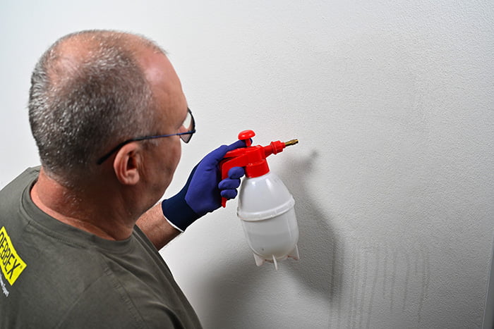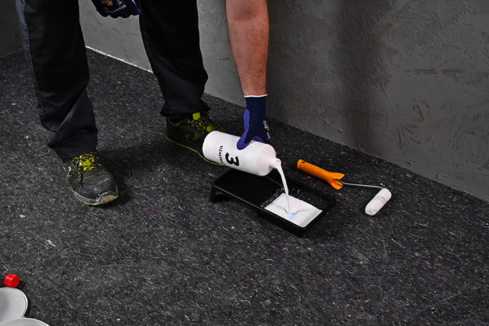 Pomocí válečku naneste na celou plochu ochrannou vrstvu „Označeno 3 – uzavírač”. Spotřeba: přibližně 0,2 kg/m2. Nanášejte rovnoměrně tak, aby přípravek nestékal po stěně, ale dobře se vsákl do podkladu.