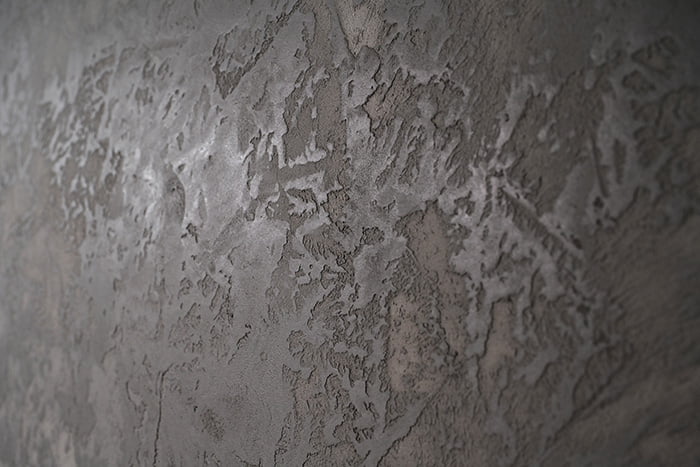 Naneste druhou vrstvu pomocí dekorativních technik, jako je „roztahování“ nebo „rozetírání“. Vytvořte nepravidelný reliéf připomínající beton. Po krátkém zaschnutí hmoty (15 až 30 minut) lze povrch dodatečně vyhladit.
